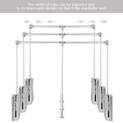 Wardrobe Hanger, Lift Pull Down Wardrobe Rail Adjustable Width Wardrobe Clothes Hanging Rail Soft Return Space Saving,Ad